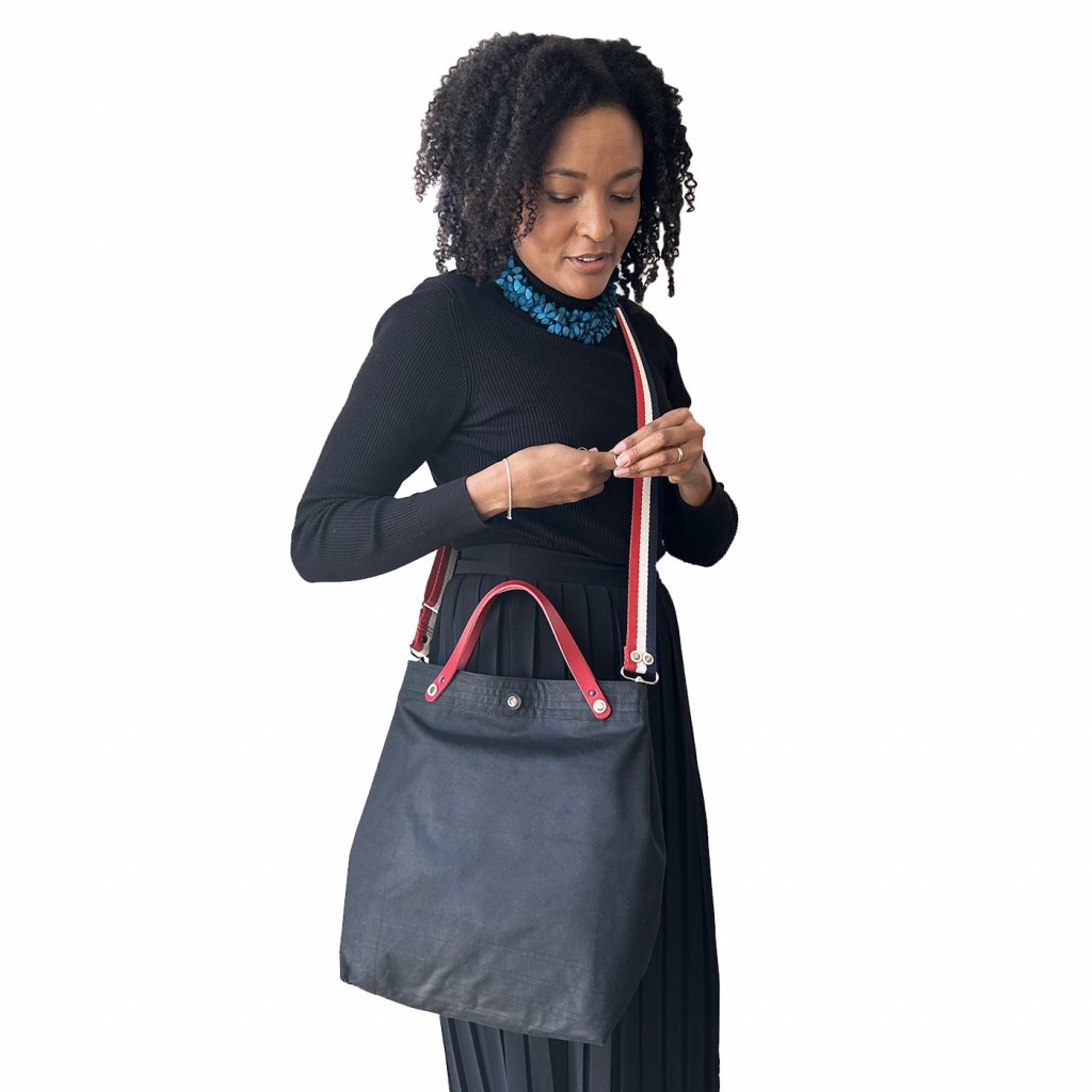Tašku jsem navrhovala s myšlenkou, že by bylo skvělé vyrobit univerzální tašku pro ženy i muže. Je jasné, že zvítězil jednoduchý desing s možností nošení tašky v ruce nebo přes rameno. Na tašce najdete kožená ucha i nastavitelný popruh, jehož délka se snadno přizpůsobí výšce nositele.