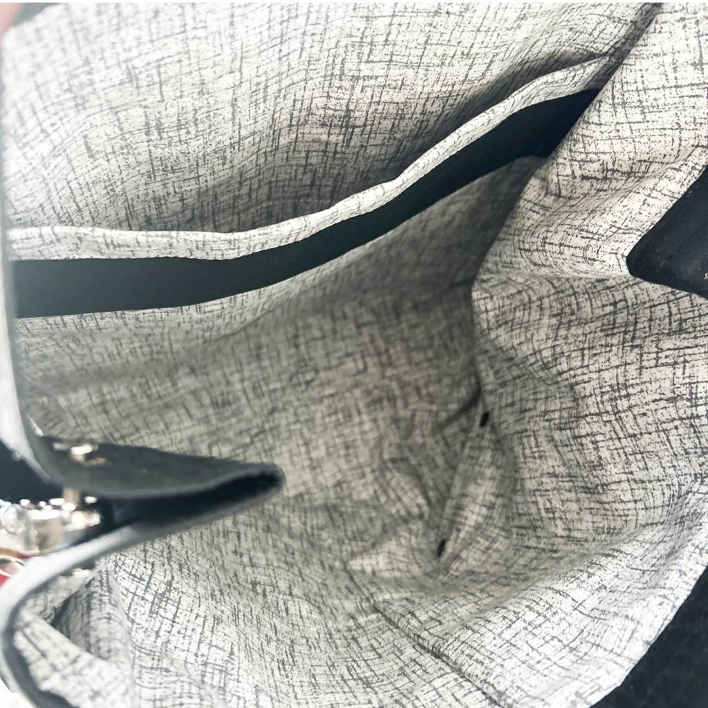 - boční části jsou založené dovnitř prostoru tašky a je zde instalována kovová hrazdička, na kterou se uchytí popruh
