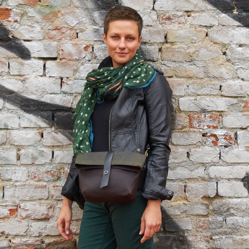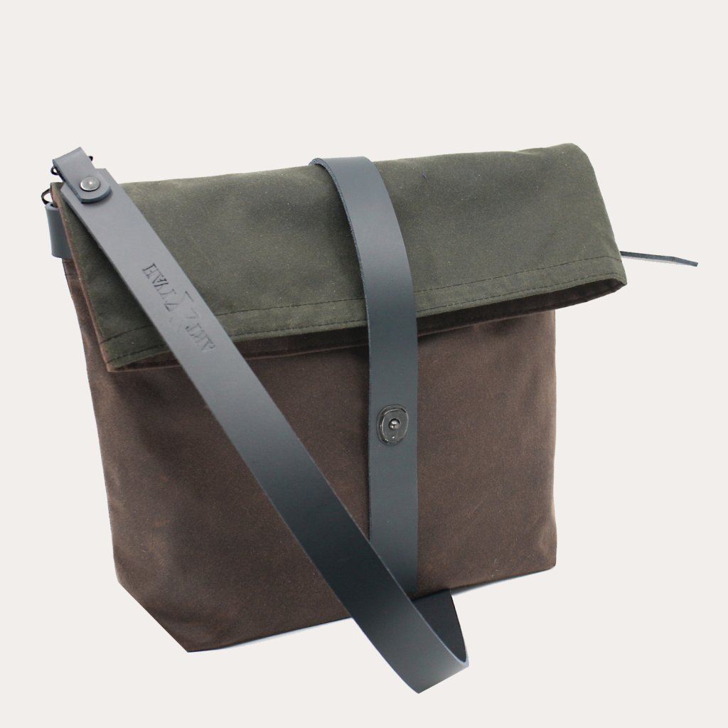 - dvoubarevná autorská kabelka z britského voskovaného plátna WAXED COTTON BARBOUR TYPE