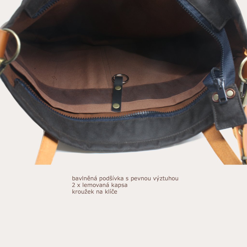 WAXED COTTON ANTIQUE BARBOUR TYPE, které skvěle ochrání obsah tašky po celý rok v každém počasí
