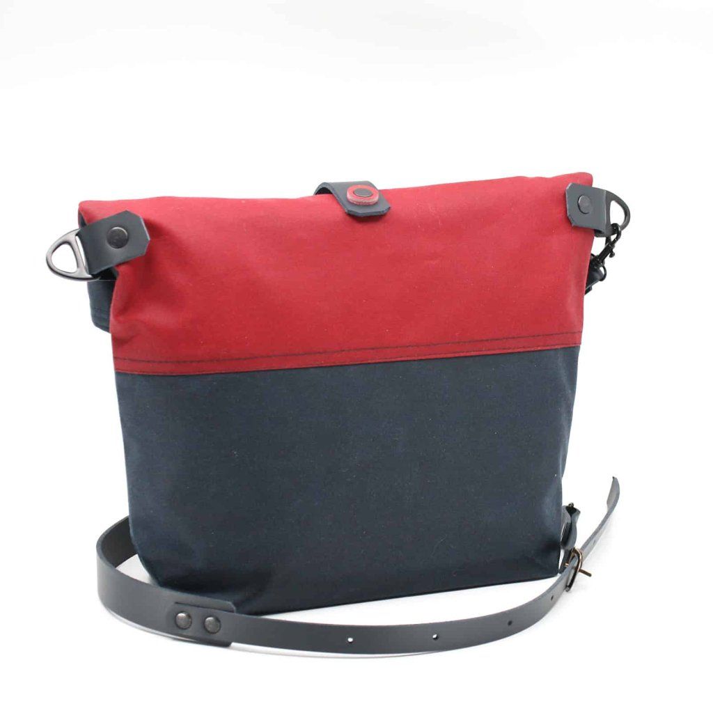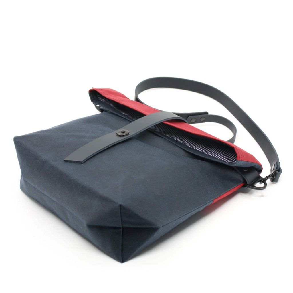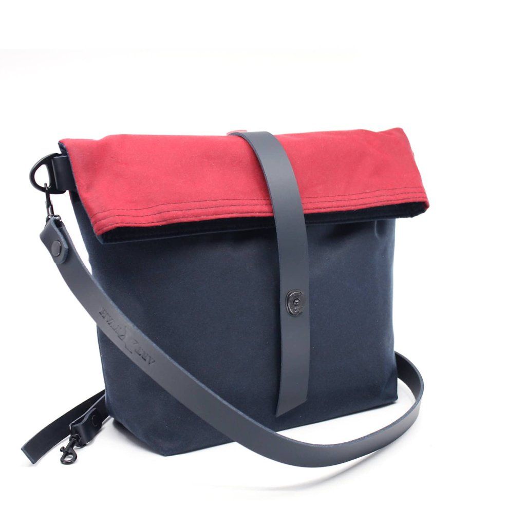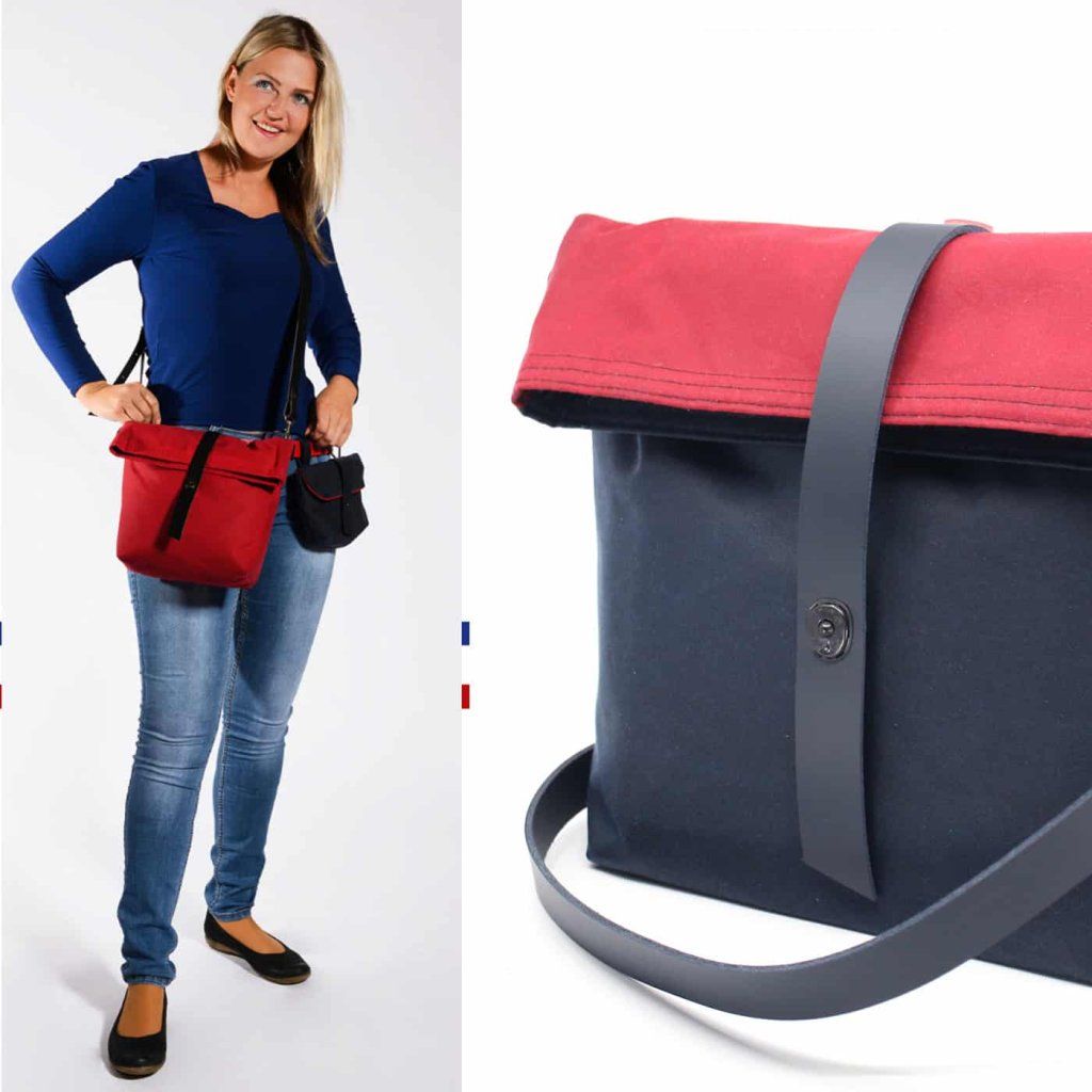 Kabelka v kombinaci modré a červené barvy působí moderně a hodí se k běžnému i sportovnímu outfitu.